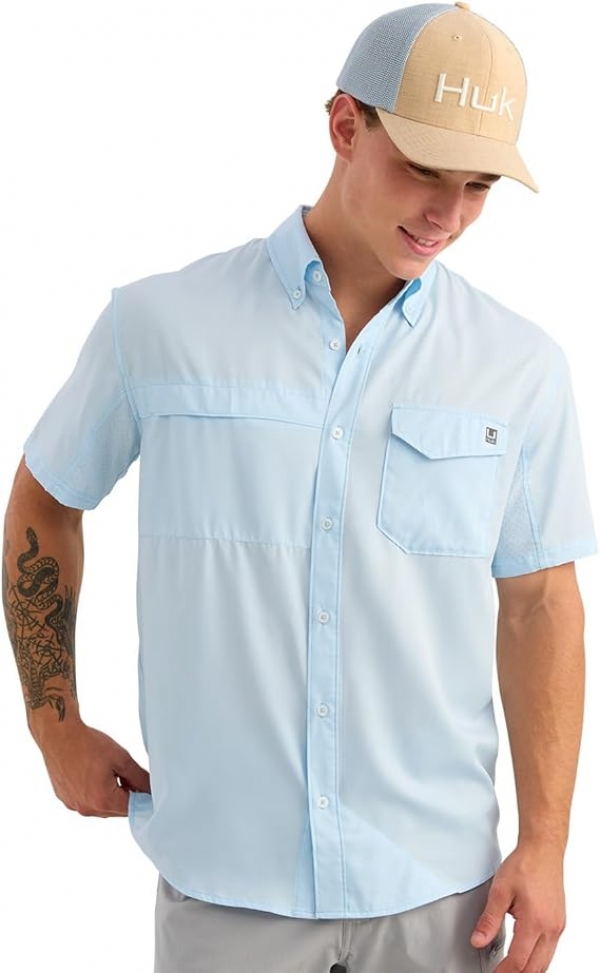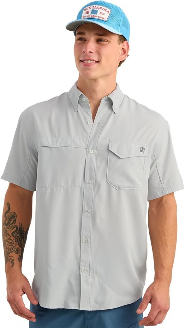 - HUK MENS TIDE POINT BUTTON DOWN SHIRT: Crafted with moisture-wicking technology to keep you dry and comfortable, even during the most active fishing or outdoor adventures