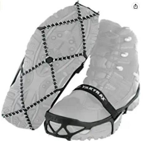 - Traction cleats that fit over shoes for safely walking, hiking, or jogging on packed snow or ice